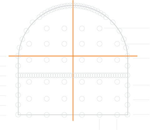 Skapa en fri yta genom att borra ett antal hål i mitten eller i botten, alternativt använd slitsborrning för att borra överlappande hål. Borra sedan spräckhål för Yamamoto-spräckaren med lämpligt hålavstånd. Hålens avstånd beror på bergets hårdhet och struktur. Normalt bör man borra tätare avstånd i botten och längs periferin men större halvstånd i övre delen. Nedan har vi gett ett exempel på borrmönster in en mindre tunnel.